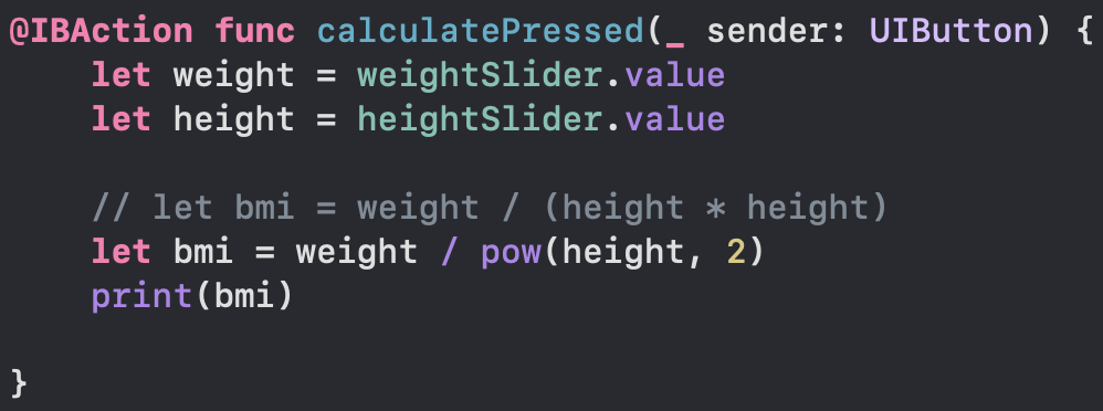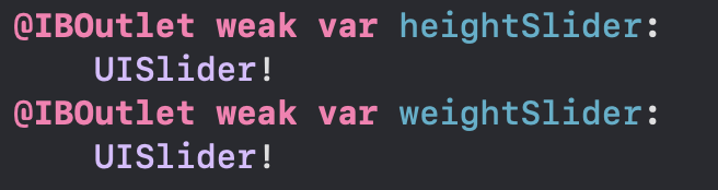 weight, height value의 값들은 위의 IBAction function과 별개이므로 바로 사용할 수 없다.