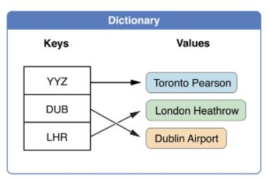 dictionary는 array처럼 순서(index)가 있지 않고, key-value pair가 존재한다.