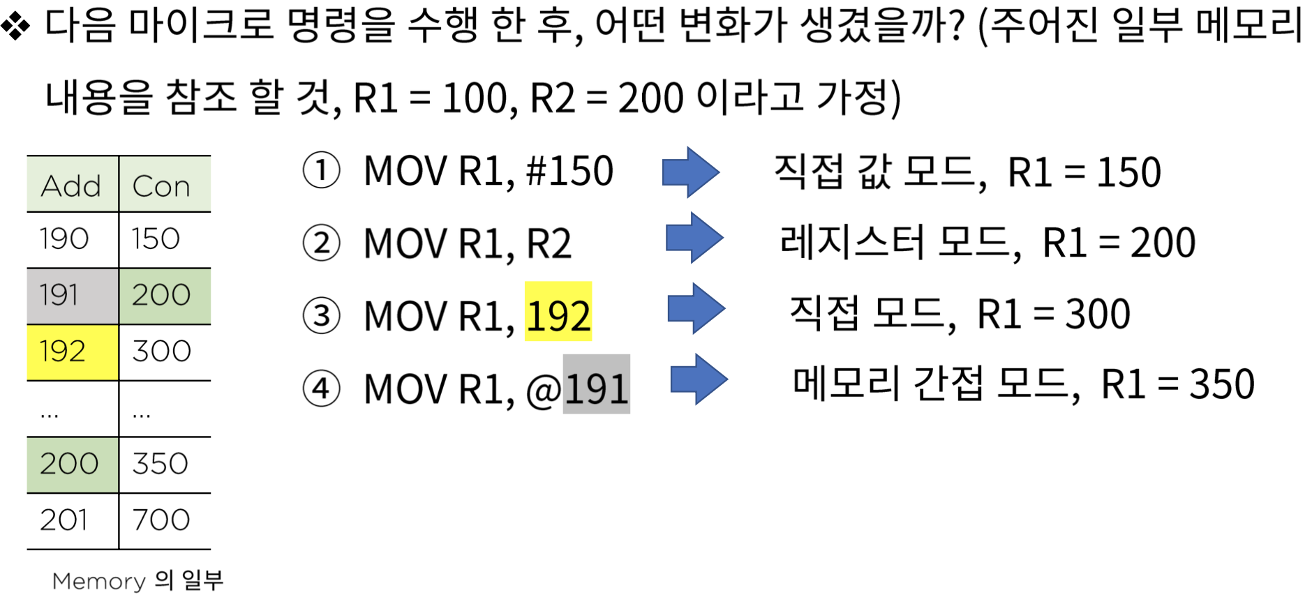 ex) MOV R1, #100
