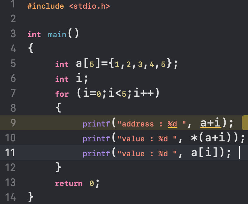 10,11번째 줄은 포인터가 가리키는 값을 출력한다.