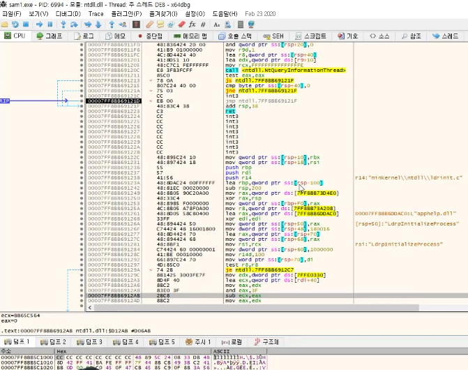 x64dbg (Disassembler 프로그램, 고급언어로 작성된 소스를 어셈블리 언어로 확인 가능한 툴)