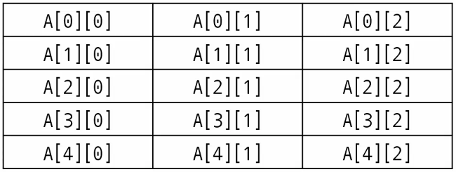 2차원 배열은 흔히 볼 수 있는 위의 표와 같은 구조를 갖는다.