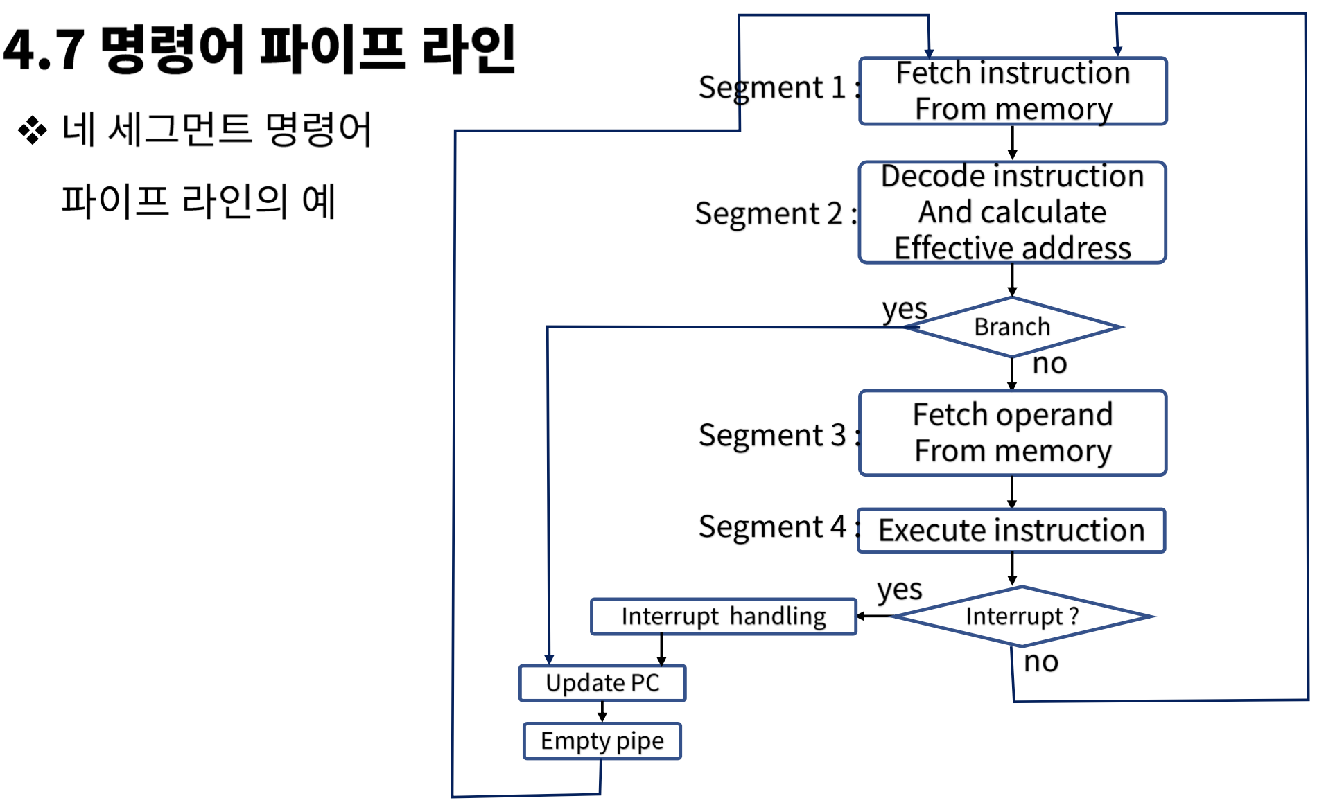 * 실행되지 않는 세그먼트도 있을 수 있음 (ex. 레지스터 모드 명령의 경우 - 유효주소 계산 불필요)