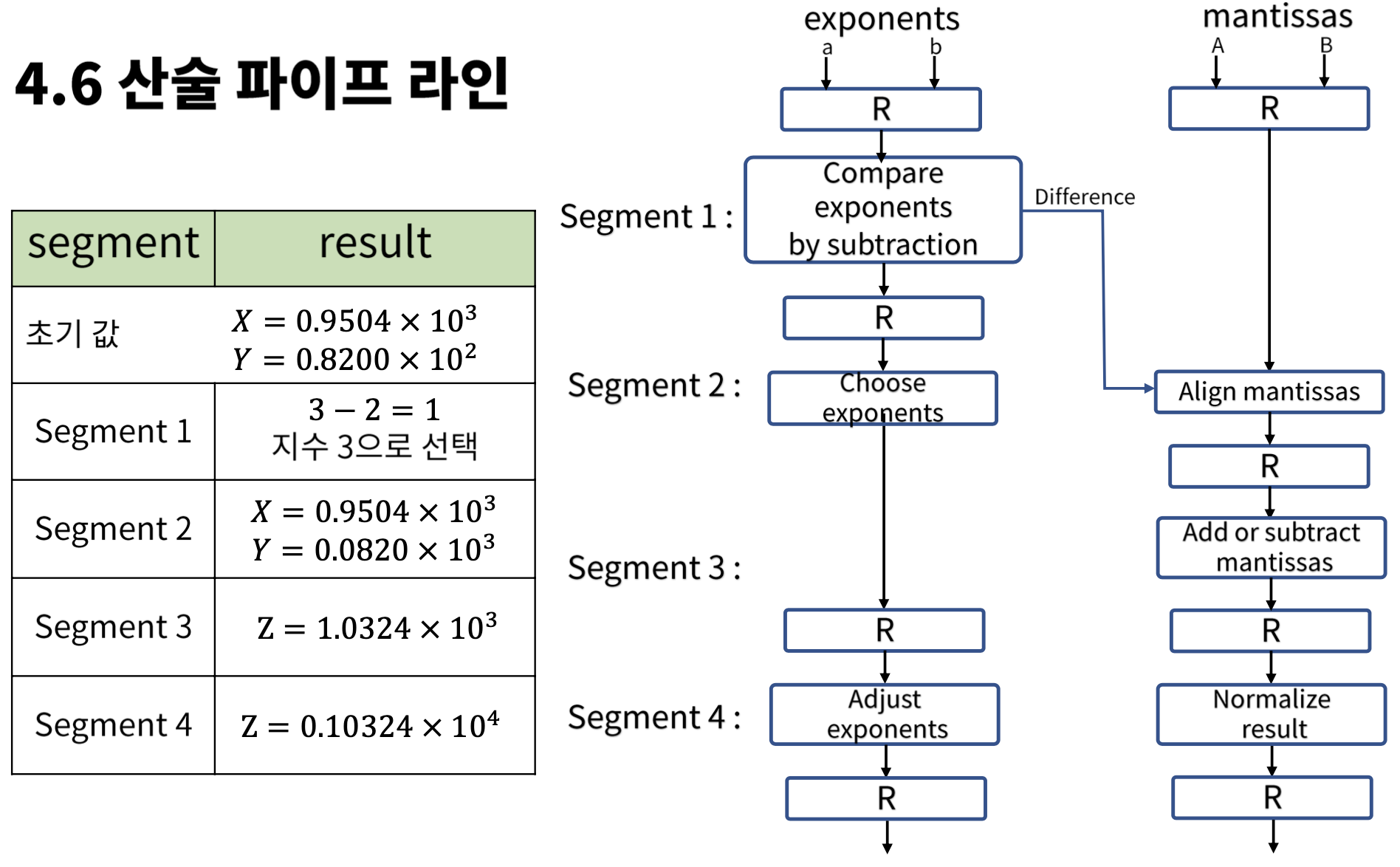 * 부동 소수점 덧셈과 뺄셈을 위한 파이프라인