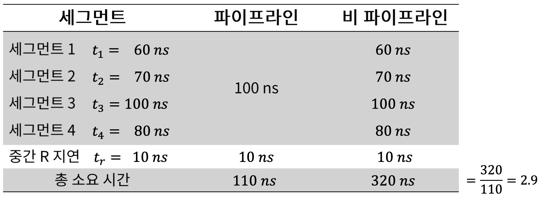각 레지스터를 제어하는 클럭 사이클은 최대 전파시간을 갖는 세그먼트의 지연시간과 싱크를 맞추어야 하기 때문에