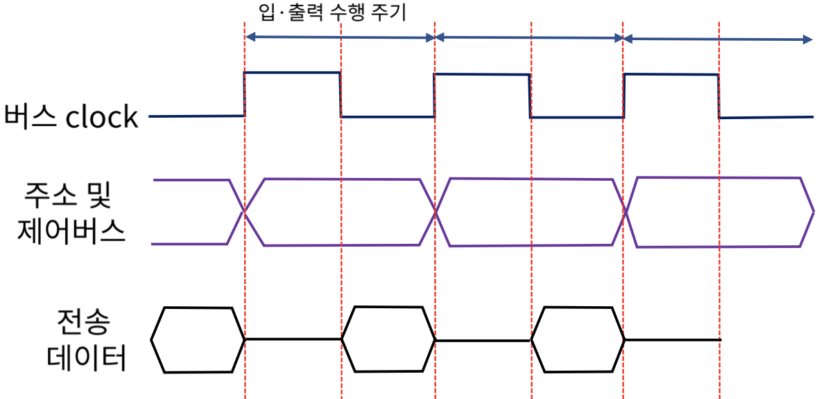 버스에 연결된 모든 장치는 clock에 맞추어 입출력이 진행되도록 설계