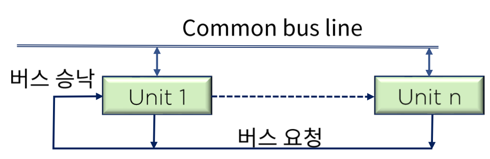 폴(poll)라인으로 버스 승인 신호를 대체하여 모든 장치에 연결