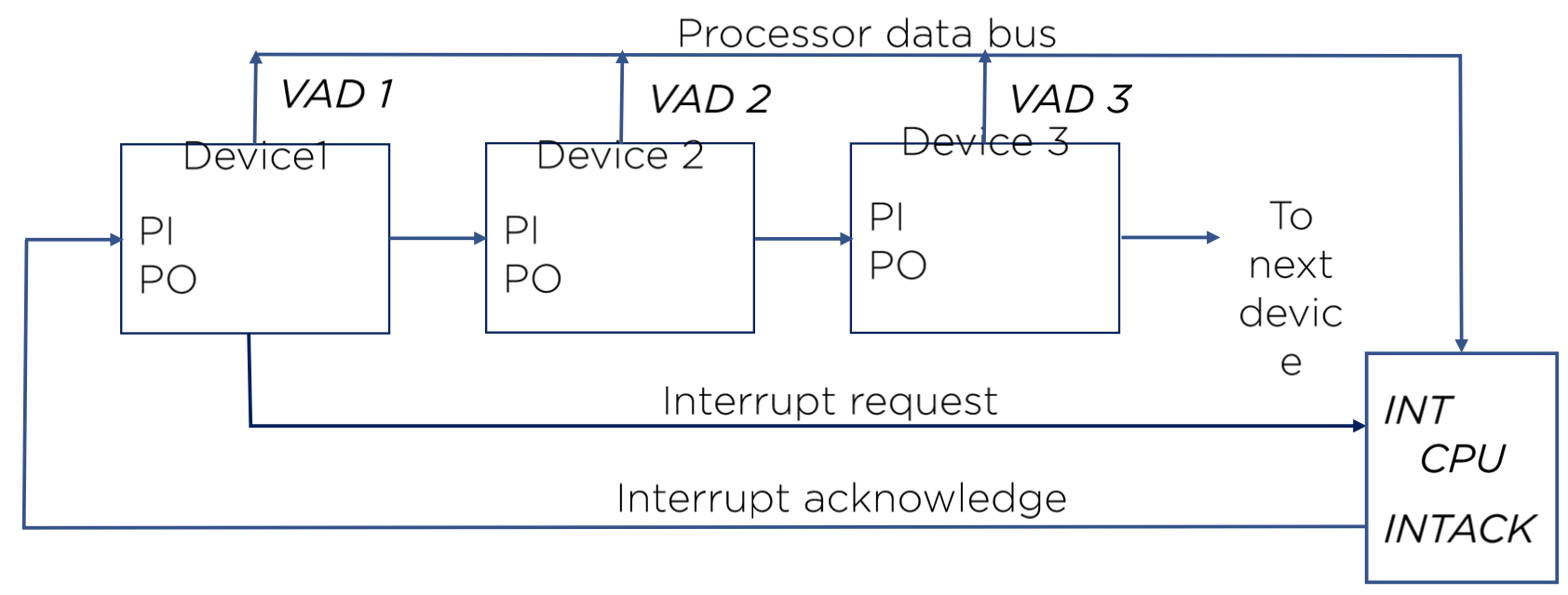 인터럽트를 발생하는 모든 장치를 직렬로 연결한다.
