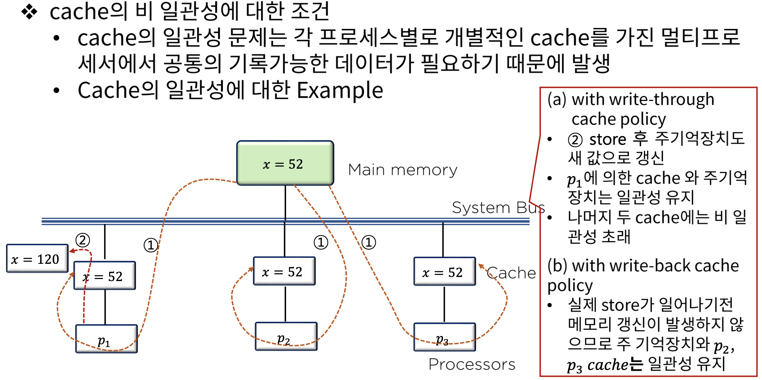 * 캐시의 비 일관성에 대한 조건