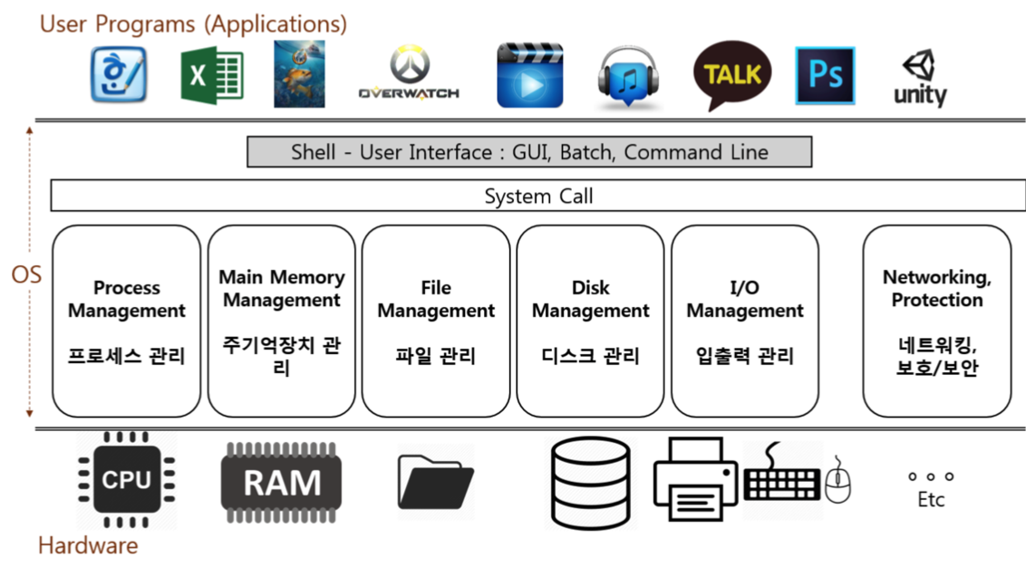 - 운영체제 역할 3 : 컴퓨터 하드웨어와 프로그램을 제어