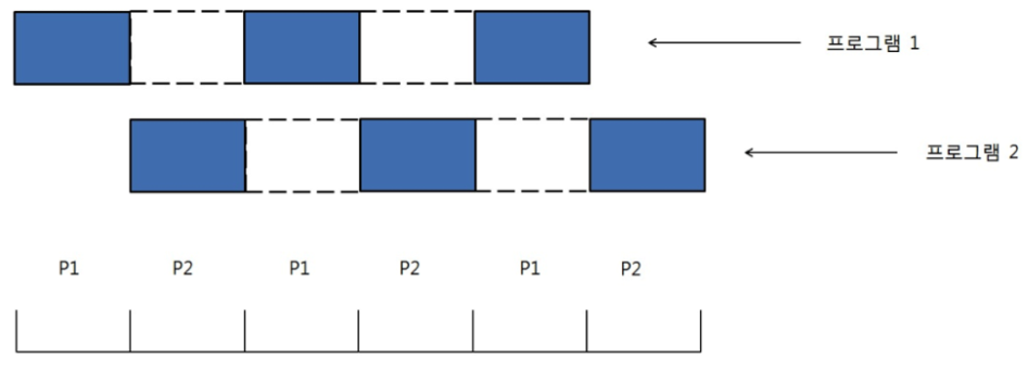-> 사용자 입장에서는 프로그램이 동시에 실행되는 것처럼 보인다.