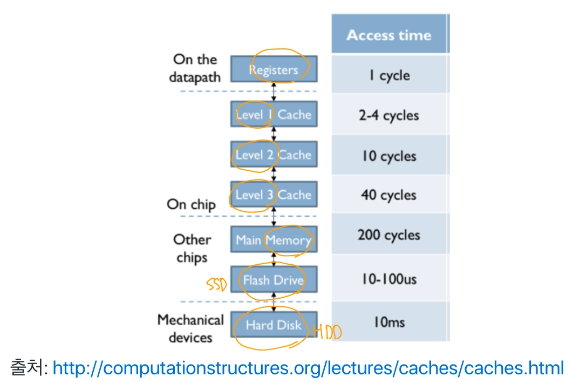 flash drive 부터는 더이상 cycle로 표현하기가 어렵기 때문에 us, ms와 같은 시간 단위가 사용되었다.