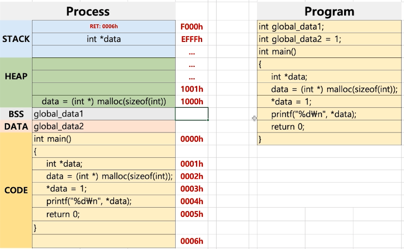 3. HEAP <- data = (int*)malloc(sizeof(int)) ---- 그냥 32비트의 공간에 생성되는 것.