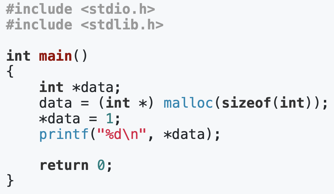 위의 코드에서 malloc(sizeof(int))으로 쓰였으므로 통상적으로 32bit 의 공간만큼을 동적 메모리할당하게 된 셈이다.