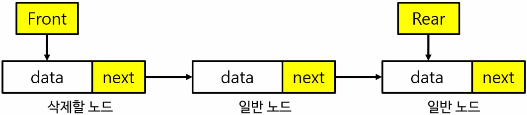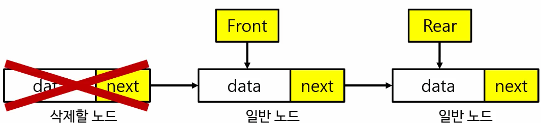 이전 Front가 가리키던 다음 노드가 Front가 되도록 하고,