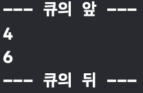 배열을 이용하여 큐를 구현했을 때와 동일한 결과가 출력된다.