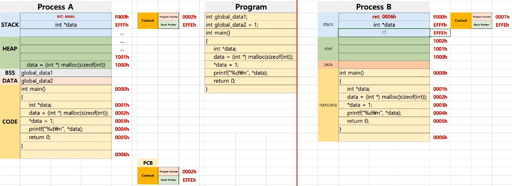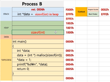 int *data까지 실행이 된 상황에서 다른 프로세스를 실행시키려고 할 때