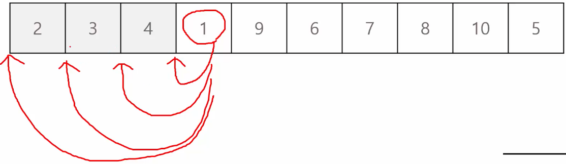 선택정렬에서와 마찬가지로 배열이 선언되었는데,