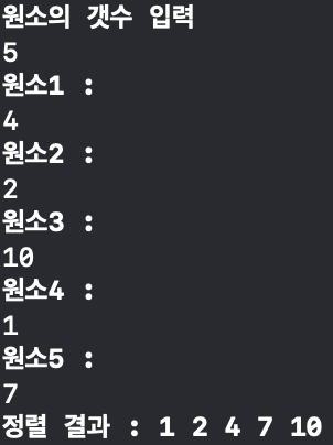 printf("정렬 결과 : ");