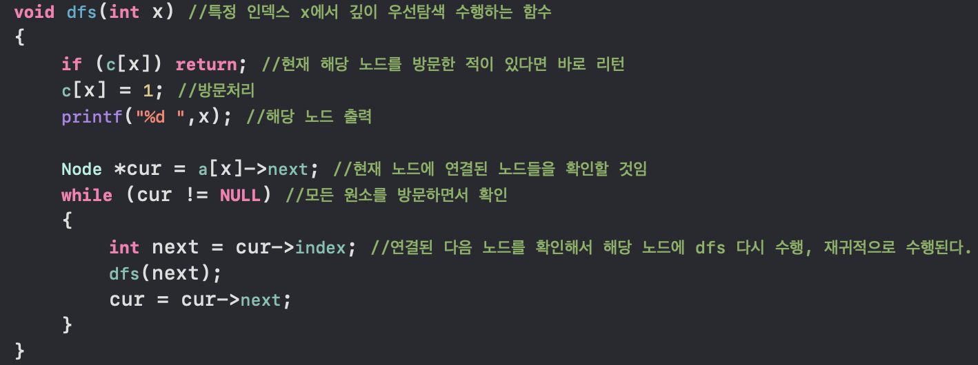 * 깊이 우선 탐색 - 깊이 우선 탐색 함수