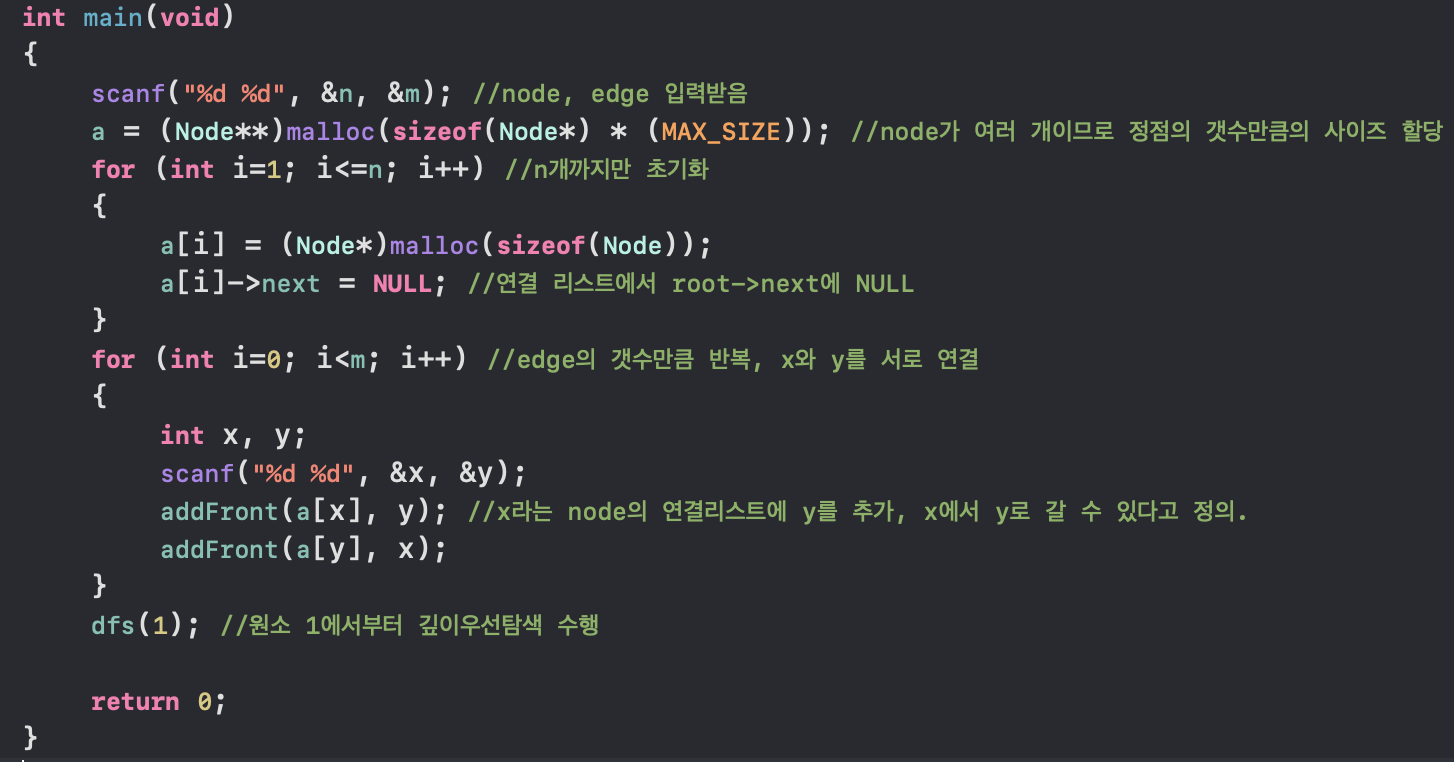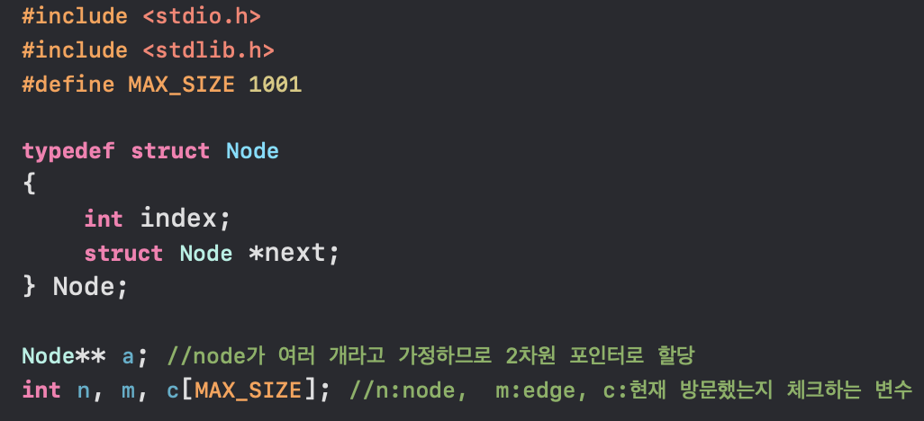 * 깊이 우선 탐색 - 연결 리스트 정의