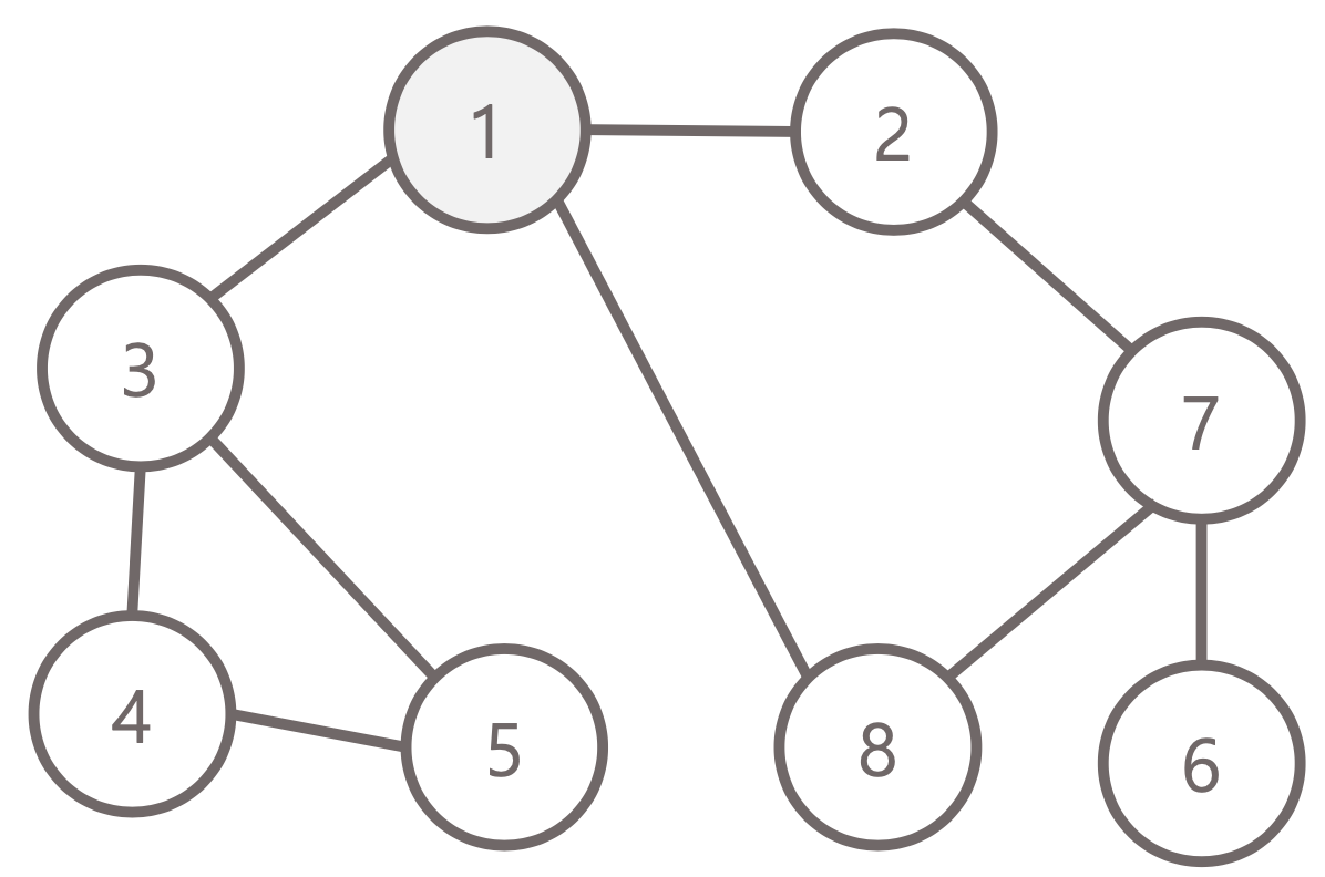 1. 탐색 시작 노드를 스택에 삽입하고, 방문 처리를 한다.