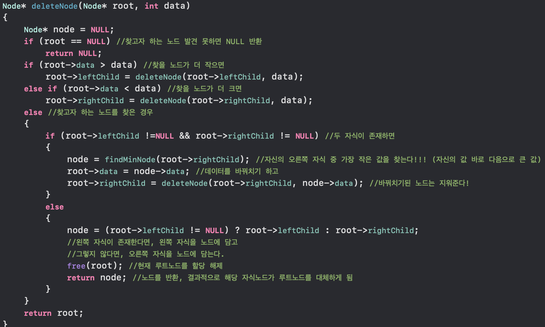 ------본론으로 돌아와서, 이진 탐색 트리의 삭제 함수