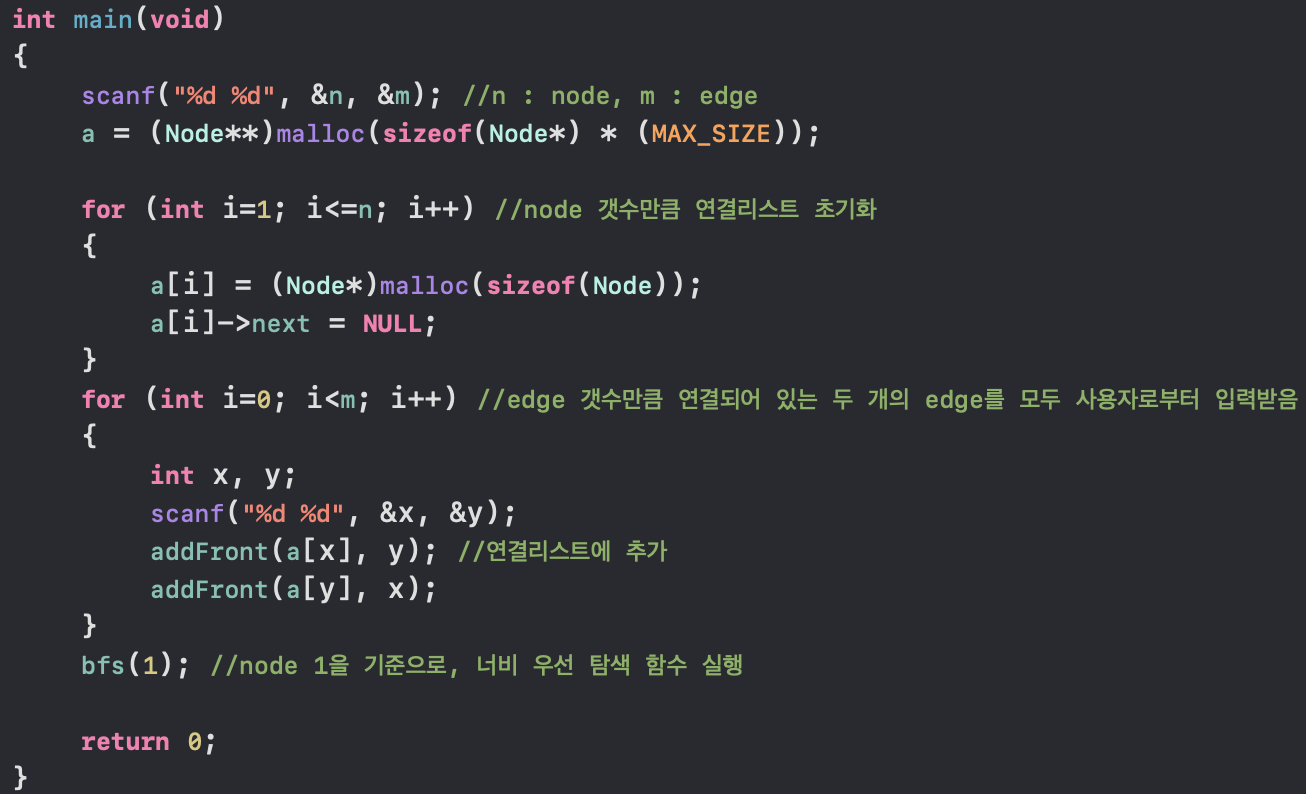 * 너비 우선 탐색 - 너비 우선 탐색 함수