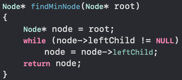 ** 이진 탐색 트리에서 가장 작은 원소를 찾는 함수 == 결과적으로 가장 왼쪽에 있는 함수를 찾음