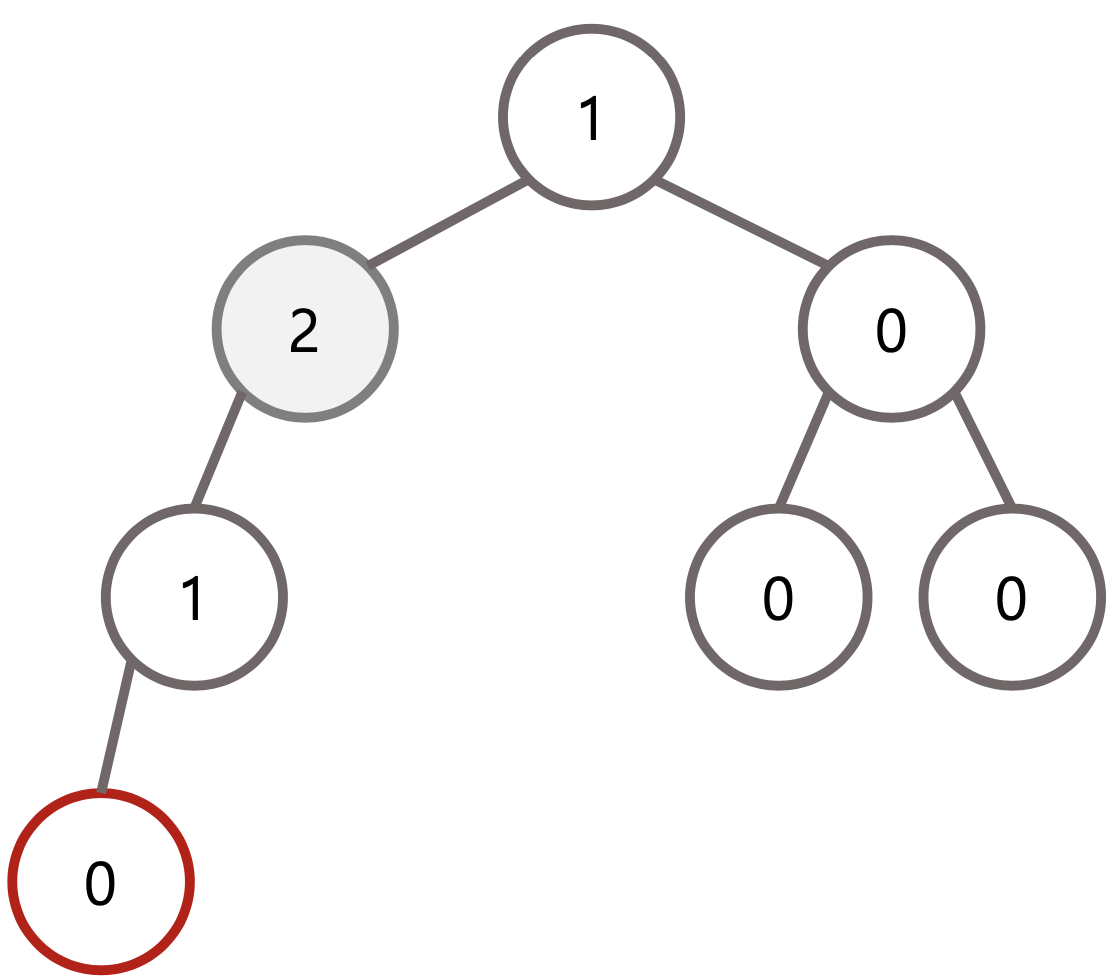 균형 인수 = | 왼쪽 자식 높이 - 오른쪽 자식 높이 |