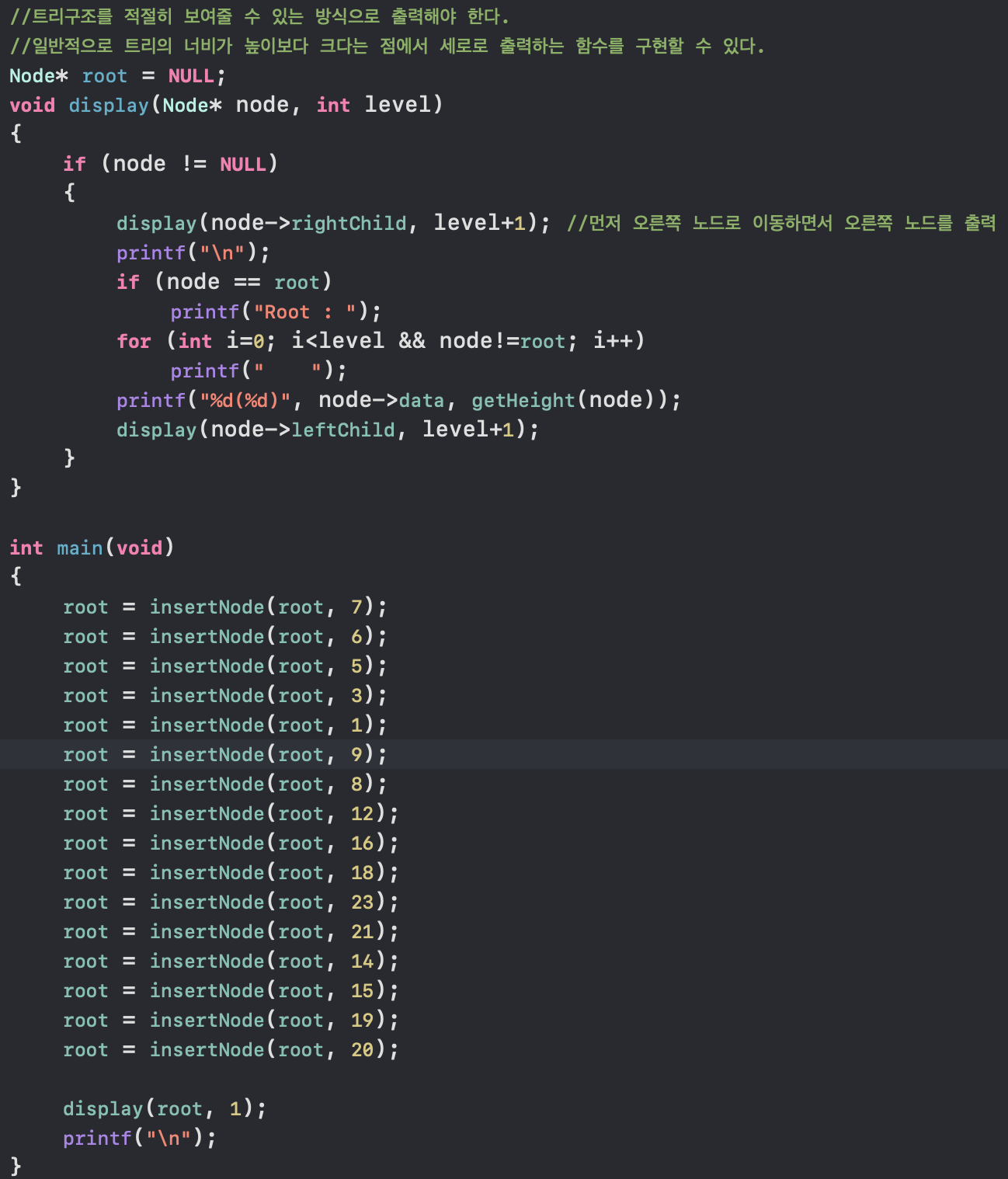 일반적으로 트리의 너비가 높이보다 크다는 점에서 세로 방향으로 출력하는 함수를 구현한다고 한다.
