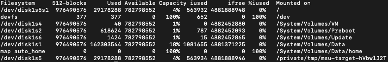 터미널에서 df 명령어로 확인 가능, (수퍼블록 정보를 읽어서 출력하는 명령어)