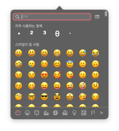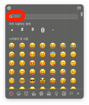 검색창에서 (기호창을 띄우면 기본적으로 검색탭이 선택된 상태이기 때문에 따로 클릭할 필요는 없습니다)