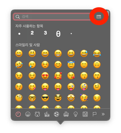 이모티콘 및 기호 보기를 클릭하면 됩니다.
