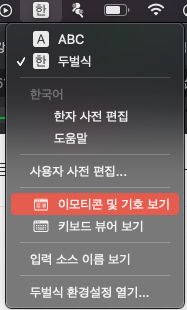 1. 위의 그림처럼 상단 메뉴바에 현재 입력언어가 나와있는 아이콘을 누른 뒤,