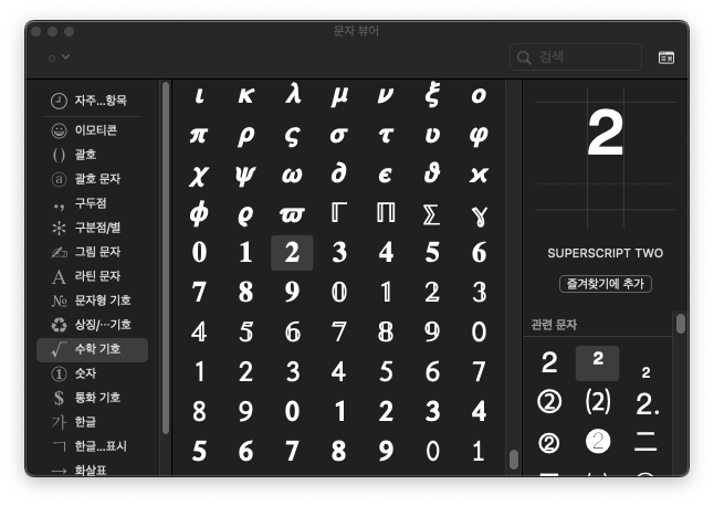 위와 같은 방식으로 원하는 기호를 검색하면 입력할 수 있고,