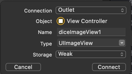 diceImageView1 로 이름을 정해주고 Connect